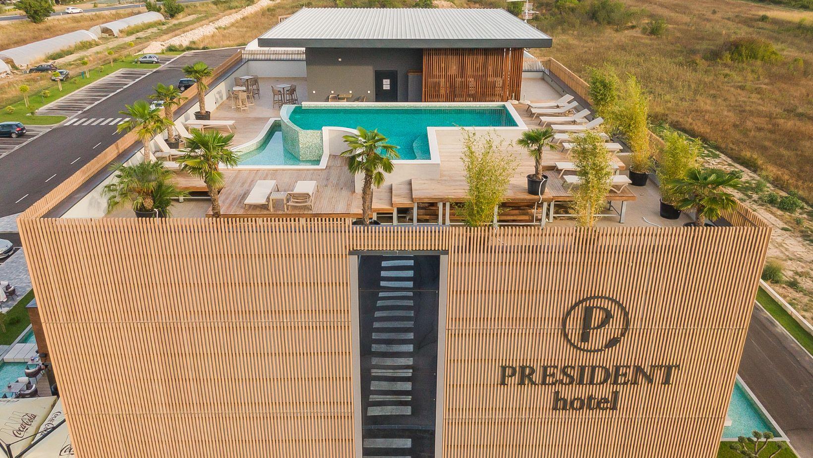 Hotel President otovoren je 1. svibnja 2021.godine. Nalazimo se na samom ulazu u Čapljinu, uz magistralni put M17. U sklopu našeg hotela imamo veliku svečanu salu koja prima preko 550 ljudi i koristi se za razne prigode, prvenstveno svatove, seminare, konferencije, promocije, te za razne svečane prigode poput krštenja, rođendana, krizmi, pričesti. Sala je opremljena najsuvremenijom opremom ozvučenja, svjetlosnim efektima, projektorom i ostalom opremom potrebnom za održavanje svih vrsta konferencija i proslava. U drugom dijelu hotela nalazi se 21 soba, 1 apartman i 1 obiteljska soba, caffe bar, restoran, terase, te na krovu hotela otvoreni bazen. Sve sobe su opremljene klima uređajem, TV uređajem, minibarom, sefom, kupanicom s fenom. U restoranu tijekom cijele godine organiziramo razna događanja: večere uz tamburaše, ugošćujemo poznate kuhare , ljetne večere uz bazen na krovu hotela za koju se uvijek traži mjesto više. Uz specijalitete naših kuhara posebno bih izdvojila naš domaći sladoled i kolače na koje sam posebno ponosna.