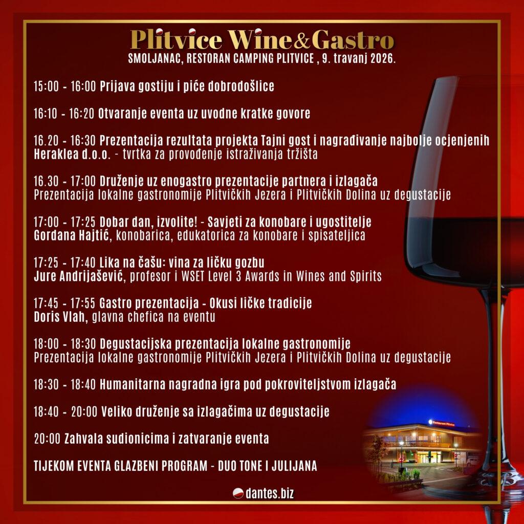 Novi termin zbog vremenske nepogode odgođenog eventa sa kraja ožujka je četvrtak 09.travnja 2026. u Restoranu Camping Plitvice. Vrlo poseban eno-gastro humanitarni susret Plitvice Wine & Gastro, je događaj koji okuplja ugostitelje, turističke djelatnike i osobe vezane uz turizam, trgovce i razne proizvođače raznih proizvoda i delicija iz cijele Like, Karlovačke županije i šire regije.