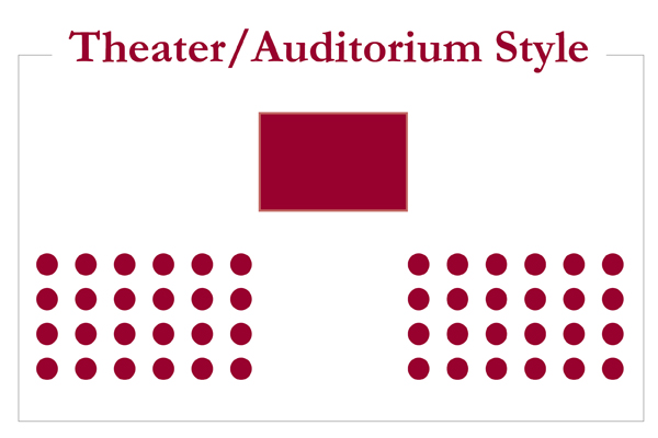 U ovom se stilu koriste samo stolice. Stolice se redaju u redovima, poput onih u teatrima, tako da svaki gost ima dovoljno prostora za noge.