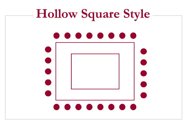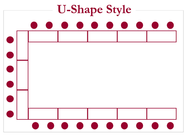 Ovaj se plan pravi sastavljanjem stolova da bi se dobio oblik slova U, a stolice se stavljaju s vanjske strane stola. Pogodan je za intenzivne sastanke koji zahtijevaju interakciju. Ograničenje ovog stila je taj što učesnici mogu biti previše razdvojeni za efikasnu interakciju, ako je raspored veliki.