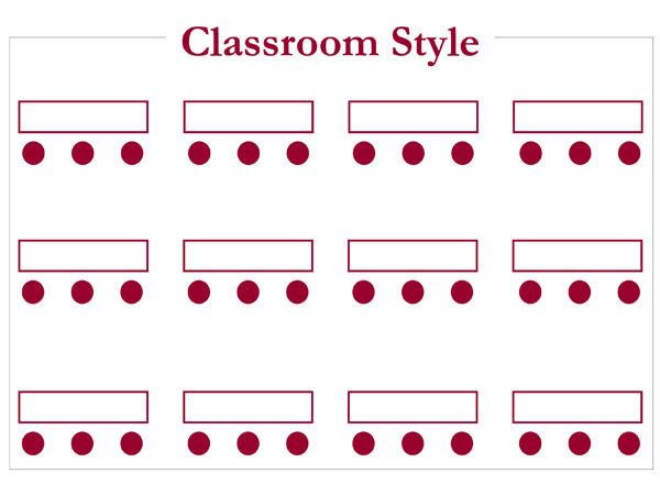Ovaj stil je sličan stolovima u učionici. Ovaj tip preporučuje se za radionice, seminare, predavanja i slično, u kojem učesnici moraju nešto raditi/učiti. Stolice mogu i ne moraju biti s naslonjačima za ruke.